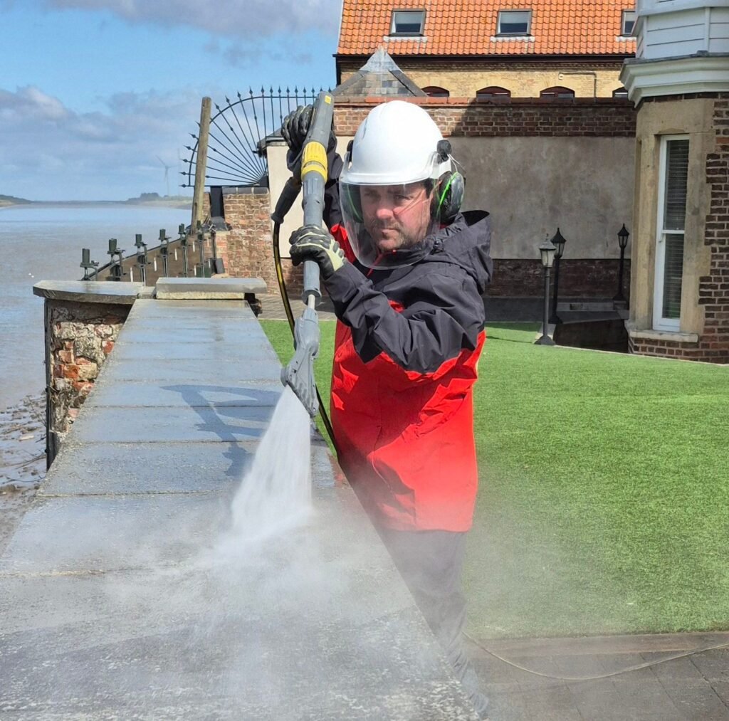 We like to work chemical free wherever and whenever possible as it is safer for children and pets and also better for the environment. However, we are qualified to apply industrial strength biocides for customers who wish to keep moss and other natural organisms away for as long as possible.